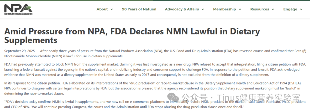 这一决定结束了近三年的监管不确定性,为价值数十亿美元的NMN市场带来了明确的方向。